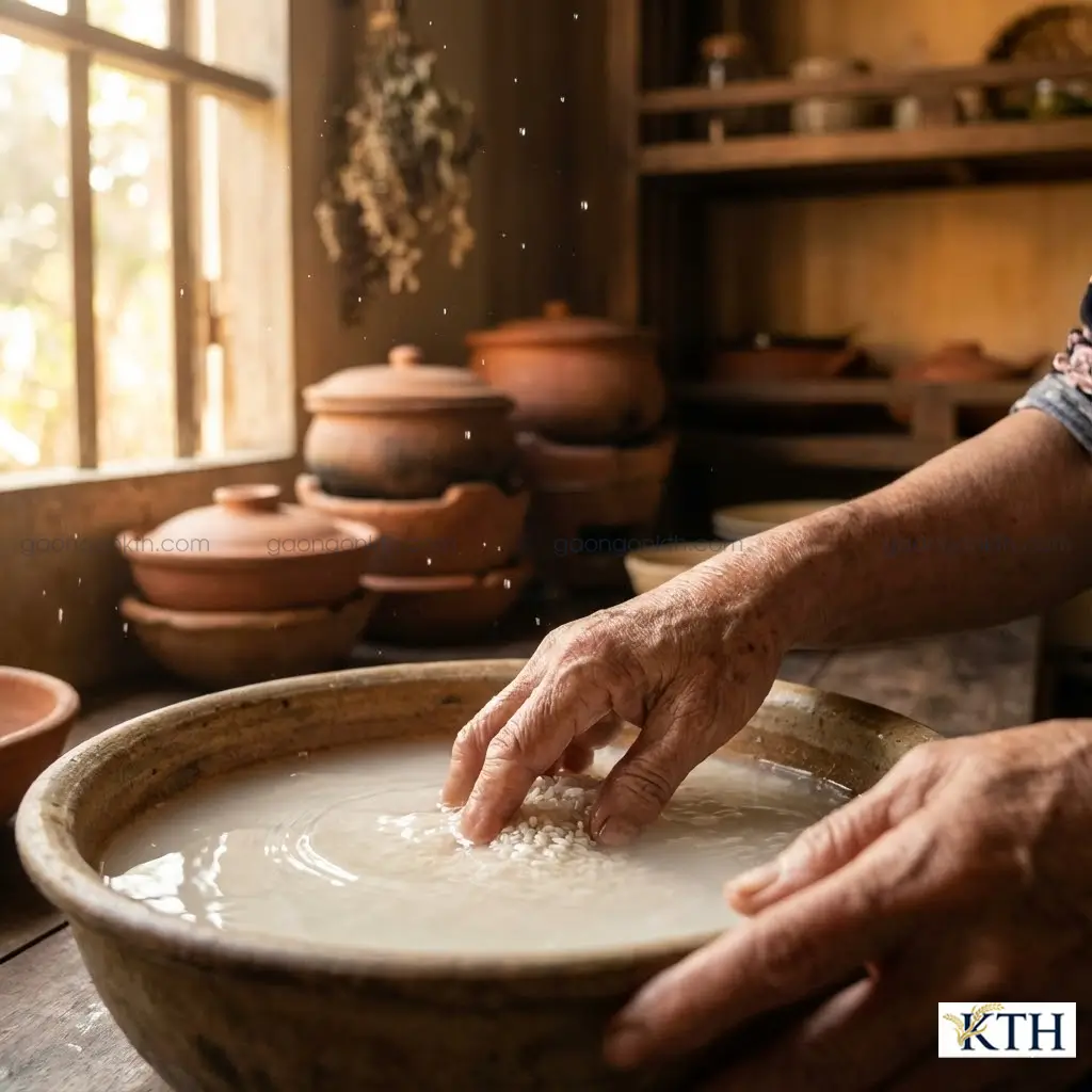 Cách làm đúng: Chỉ nên vo nhẹ tay khoảng 1-2 lần với nước sạch để loại bỏ bụi bẩn và trấu sót lại. Nước vo gạo nên còn màu trắng đục mờ, đó là dưỡng chất quý giá.