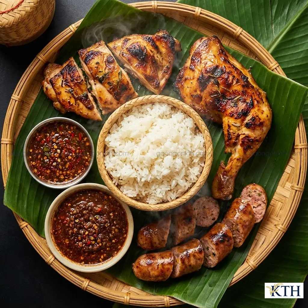 “Bộ ba quyền lực”: Xôi nếp Lào, Gà nướng và Chẩm chéo – Sự bùng nổ vị giác khó cưỡng.