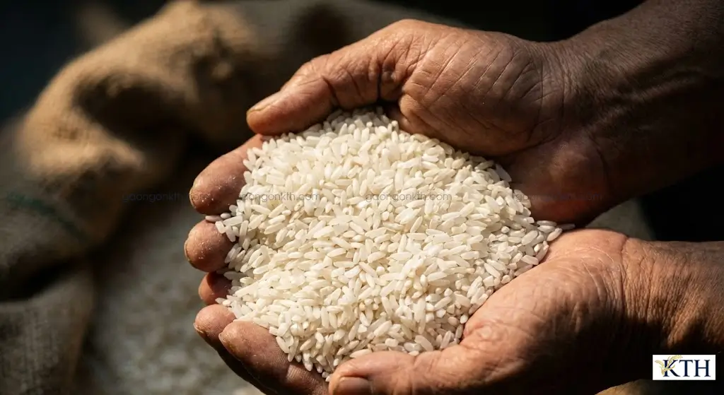3. Ngửi: Tấm 504 không có mùi thơm nồng nàn (như lá dứa hay hoa lài). Nó chỉ có mùi cám gạo nhẹ nhàng. Nếu thơm nức mũi là gạo ướp hương liệu.