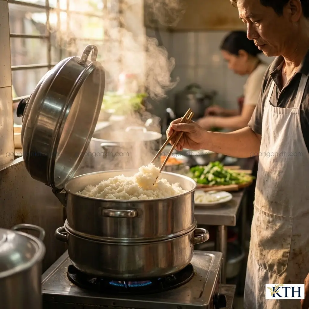 Bí quyết chuyên gia: Tấm Sơ Ri sinh ra là để HẤP (cách thủy), không phải để NẤU như gạo thường. Ngâm gạo 20-30 phút trước khi hấp là bước bắt buộc để cơm chín đều và không bị sượng.